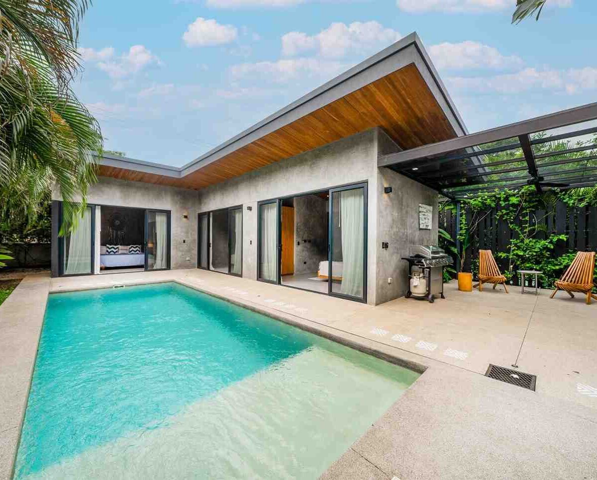 Each of the three bedrooms includes a private ensuite bathroom, air conditioning, and sliding glass doors that open directly to the private pool, creating a seamless connection with nature. Outdoors, you’ll find a covered patio with BBQ, a lush tropical setting, and a private pool where you can relax or entertain with friends and family.