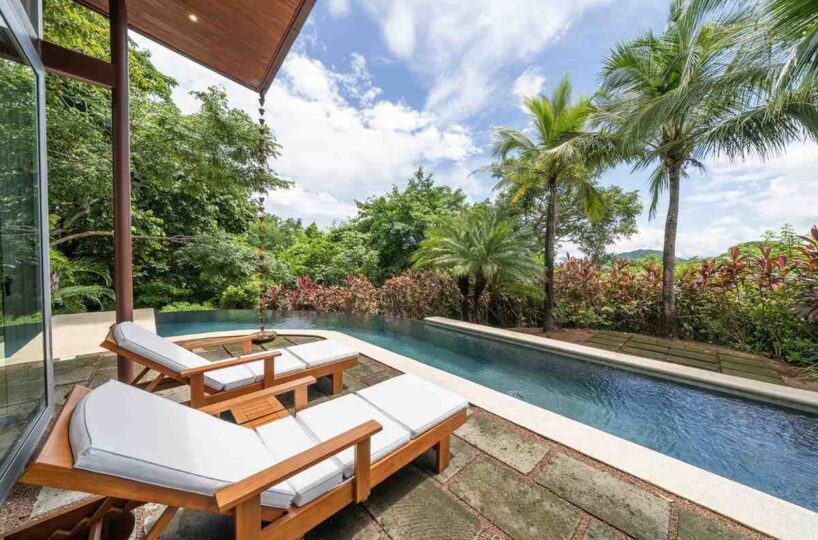 Outdoors, the infinity-edge pool blends naturally into the jungle backdrop. Enjoy your morning coffee or sunset drinks as you spot hummingbirds, butterflies, and howler monkeys from the shaded terrace or poolside loungers.