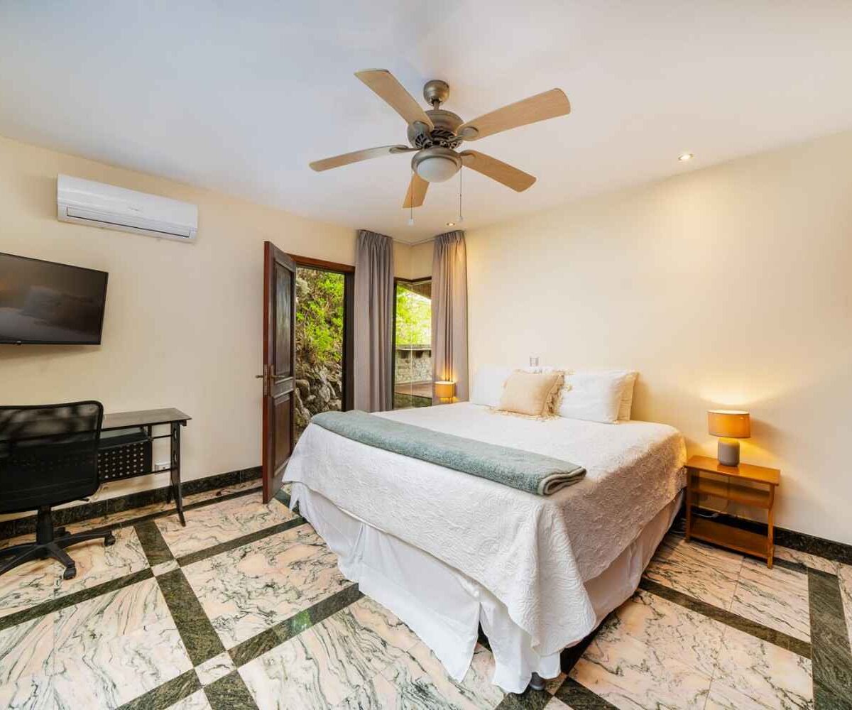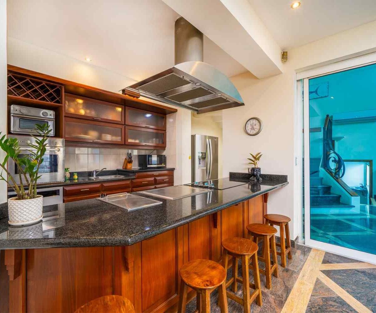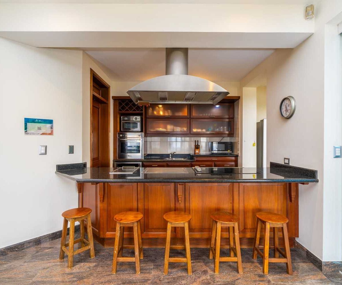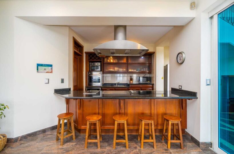Designed with attention to every detail, Casa Nikita features granite and marble surfaces, complemented by tropical native hardwoods showcased in the columns, closets, and custom kitchen cabinets. The residence boasts a total of four spacious bedrooms, 3.5 bathrooms, and 4,844 sq ft of living space, ensuring ample room for comfort and privacy. Each of the three main bedrooms includes its own ensuite bathroom, large closet, and independent air conditioning unit, ensuring maximum comfort for you and your guests.