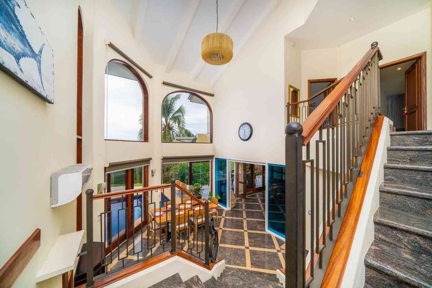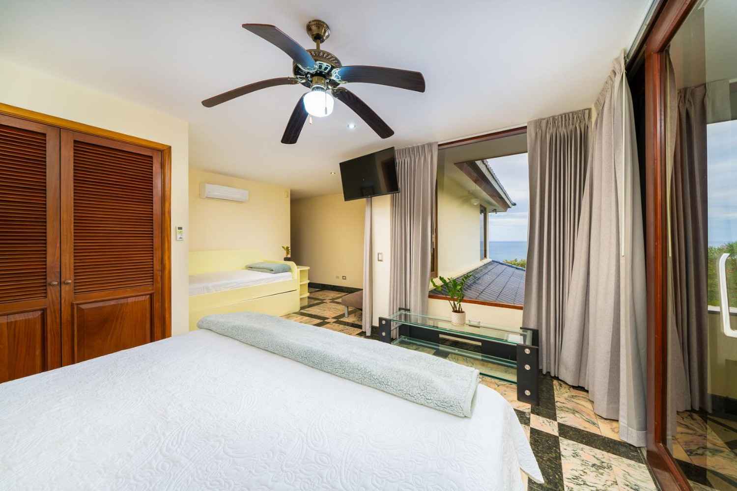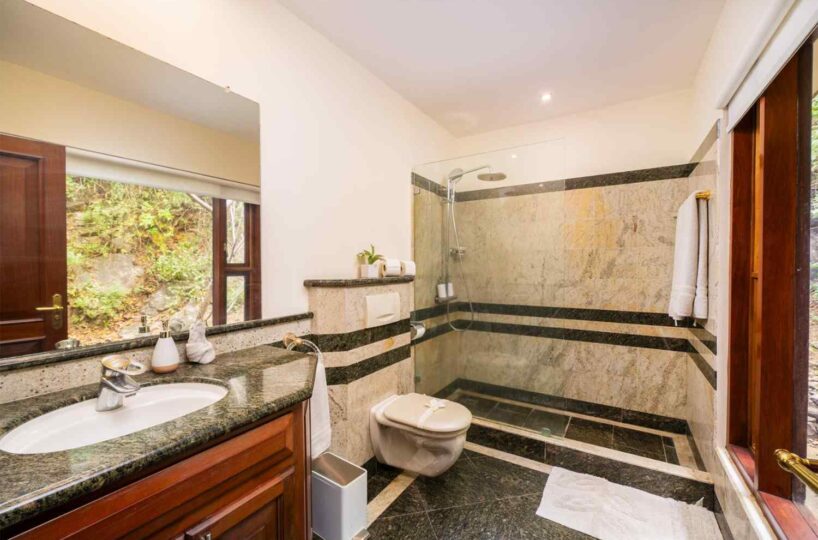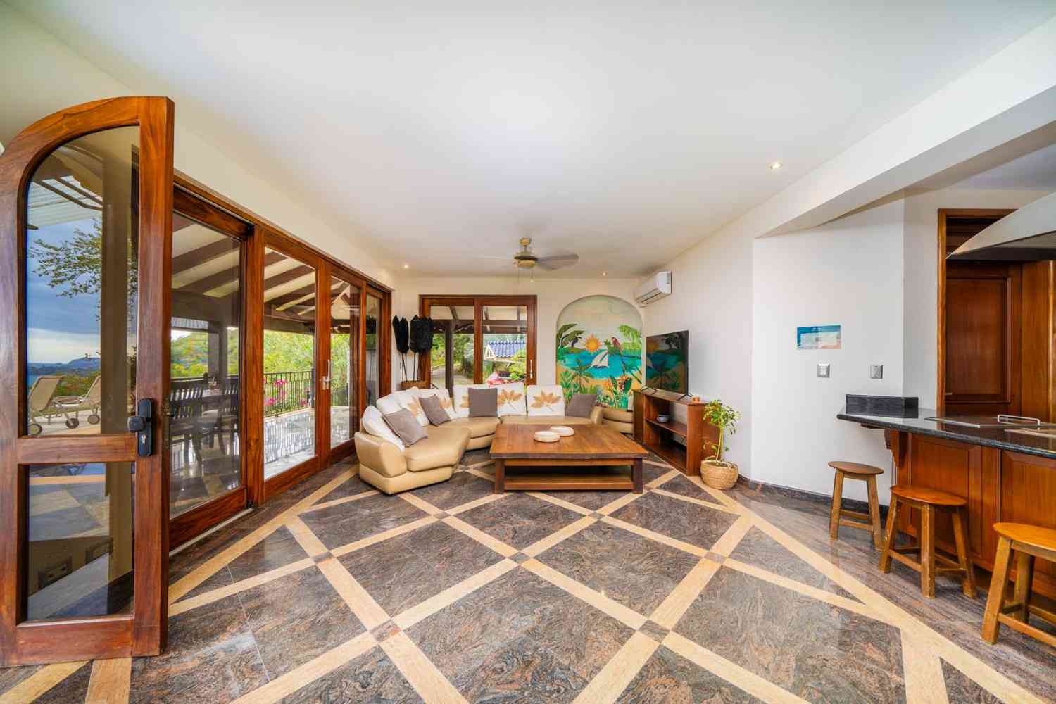 Designed with attention to every detail, Casa Nikita features granite and marble surfaces, complemented by tropical native hardwoods showcased in the columns, closets, and custom kitchen cabinets. The residence boasts a total of four spacious bedrooms, 3.5 bathrooms, and 4,844 sq ft of living space, ensuring ample room for comfort and privacy. Each of the three main bedrooms includes its own ensuite bathroom, large closet, and independent air conditioning unit, ensuring maximum comfort for you and your guests.